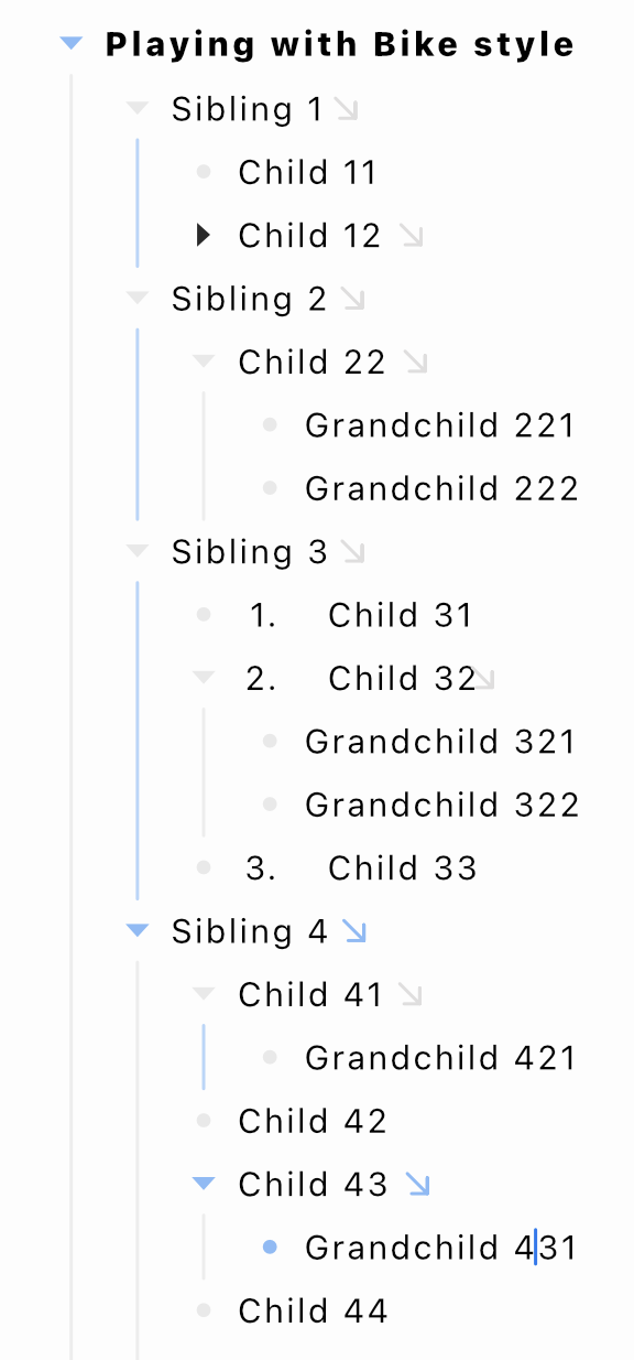 But unfortunately (as you say) that will crash in current Bike release. I have fixed problem locally though, and it works… with that said it’s not going to be very efficient in larger outlines. Will require full descendants traversal for each row in the viewport and (in the viewport) also includes all ancestors of rows in the viewport. End result is lots of traversals.