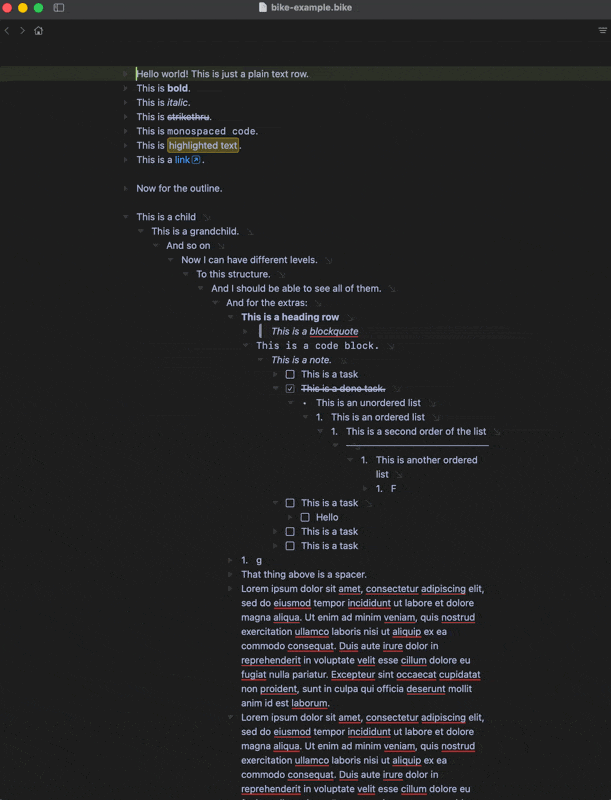 One small annoyance for me: In Bike 1, when pasting links, I could select some text, paste the link – and the selected text was taken as link title instead of the original link title. I really liked that behavior and would love to see it in Bike 2!