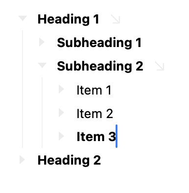 For instance, if I create an Item 3 and make it a heading, it works fine. But if I move it to become Subheading 3, things crashes. A regular item works fine!