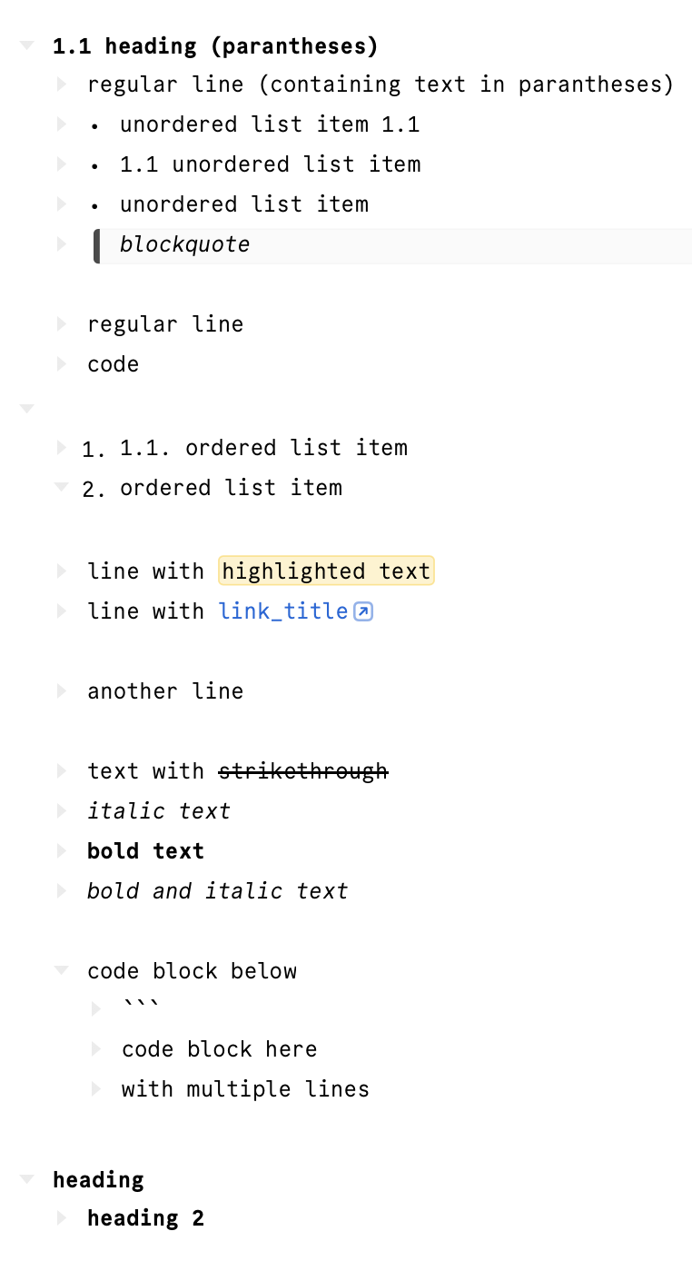 That’s probably a good idea, but just to be clear. That would mean you type **hello** into your outline. And it works and looks as you typed it. You save and reopen the document and it’s been replaced with hello. Probably some weirder cases too.