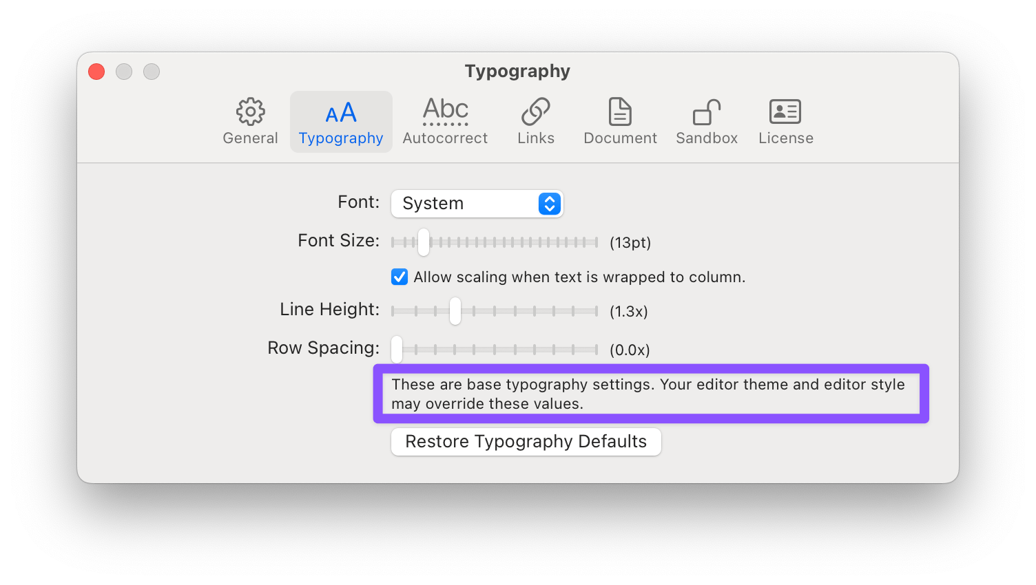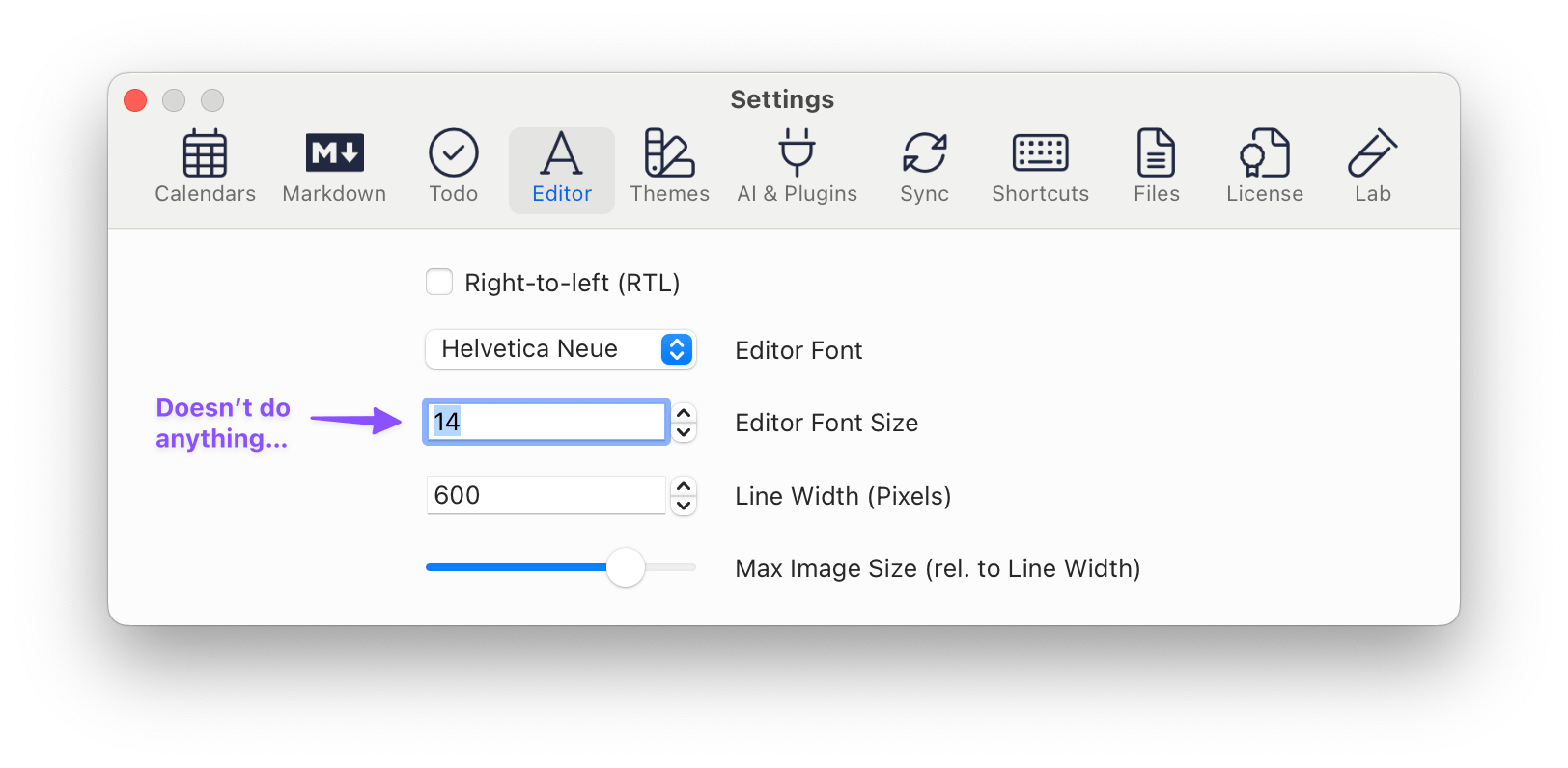 Bike 2’s settings panes are easy to use, but allow for a minimal amount of customization. Mostly just font and some line spacing.