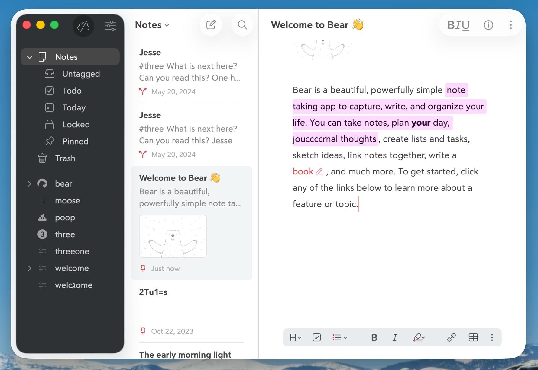 I think Bear’s glass adoption is quite nice, though again they sidestep on the sidebar, but in a way that still feels compatible with glass: