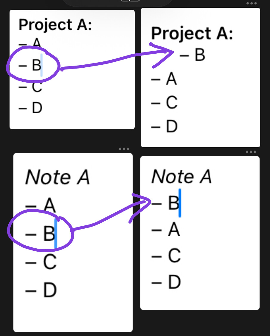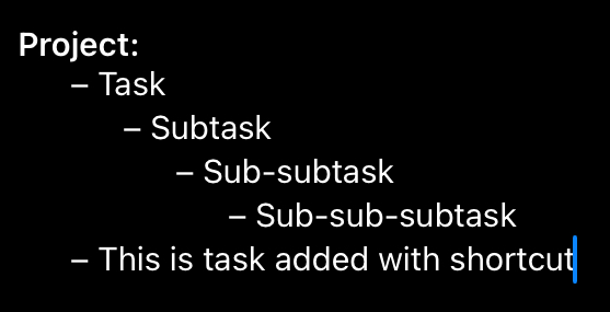 I do wish there was a button to turn a task into a note and vice versa. Moving cursor inline to delete the dash on smaller screens is a chore. Ideally, this woud be a 3-way toggle between all 3 item types