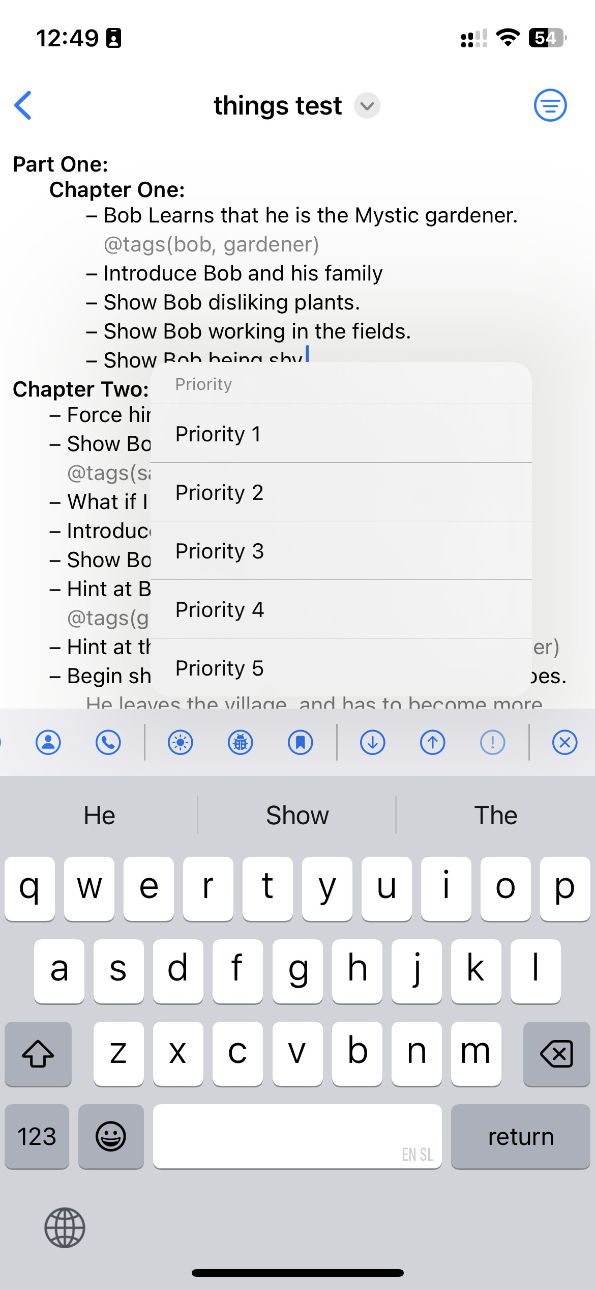 I wish there was more visual distinction between notes and tags (see screenshot above). In TaskPaper, notes are italicized by default. I never enjoyed that aspect of the default theme, but woud love to see a nice rounded corner background for tags.