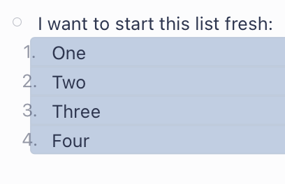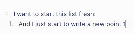 If the behaviour was A, you could easily get to Outcome B by just hitting backspace again. However, now it’s annoying to get from Outcome B (which is the behaviour in Bike 2) to Outcome A — especially if you have a list or something. After hitting backspace, you need to hit Return, maybe Tab to indent, and then turn it into a list. =/